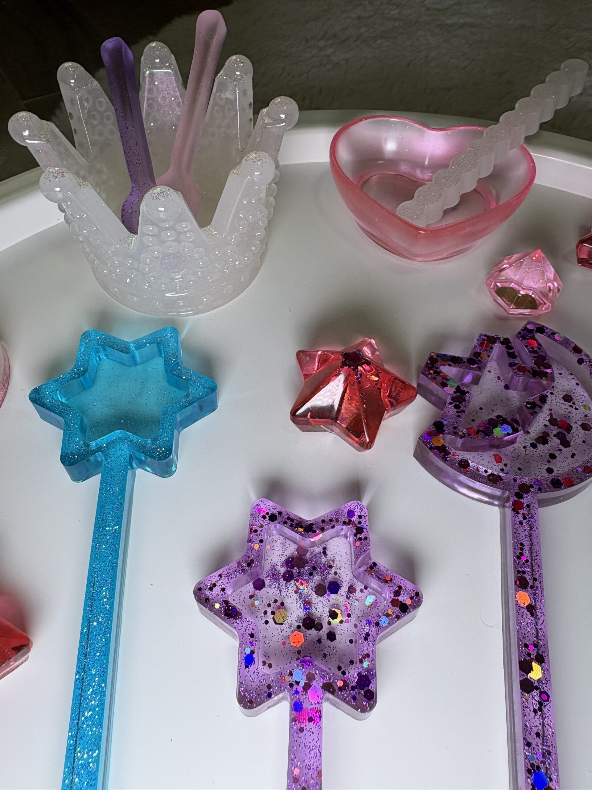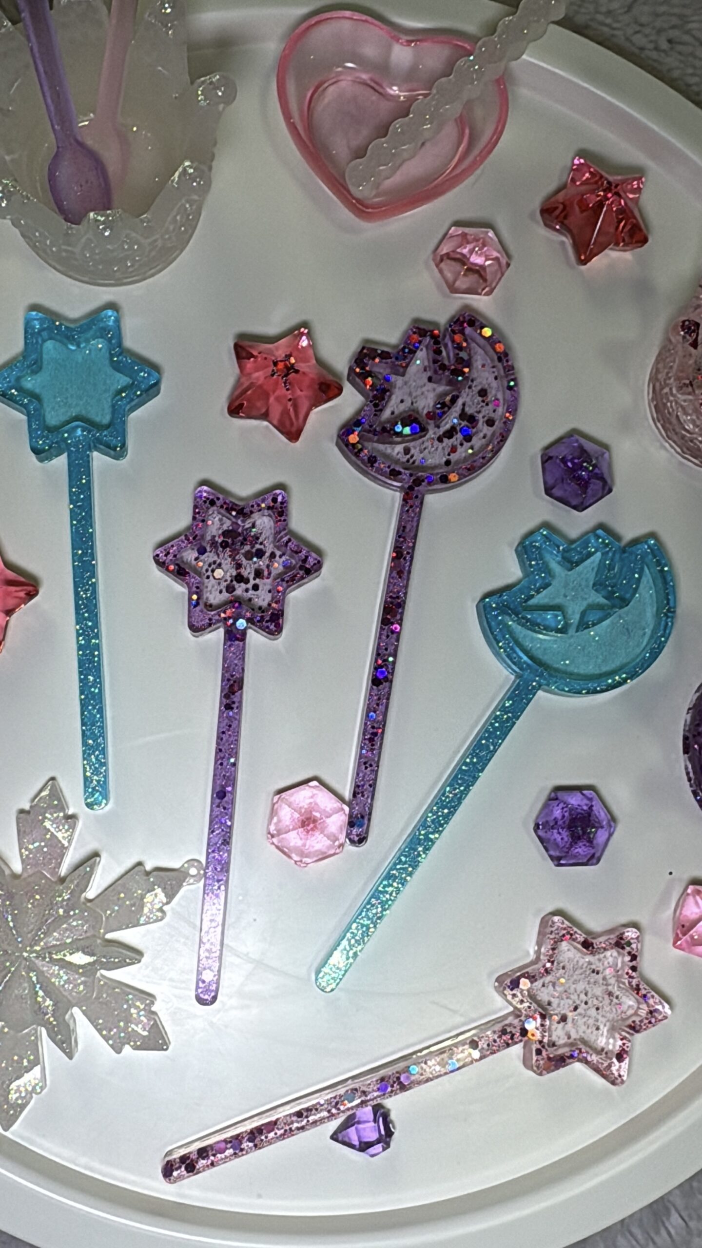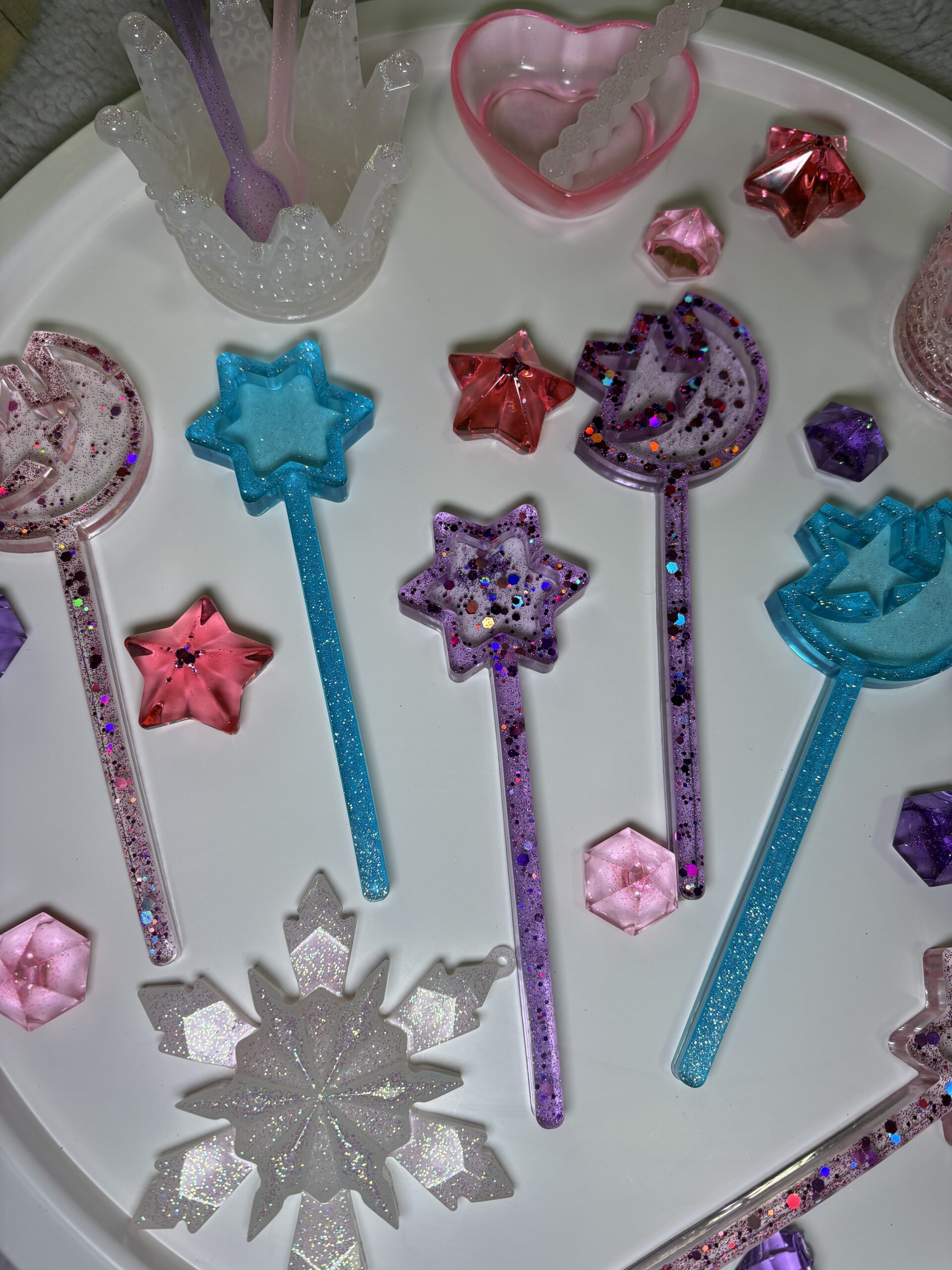 Ručne odlievaná čarovná palička z epoxidovej živice je ideálnym doplnkom pre zimné hry, Senzory Play a tvorivé potion play aktivity.