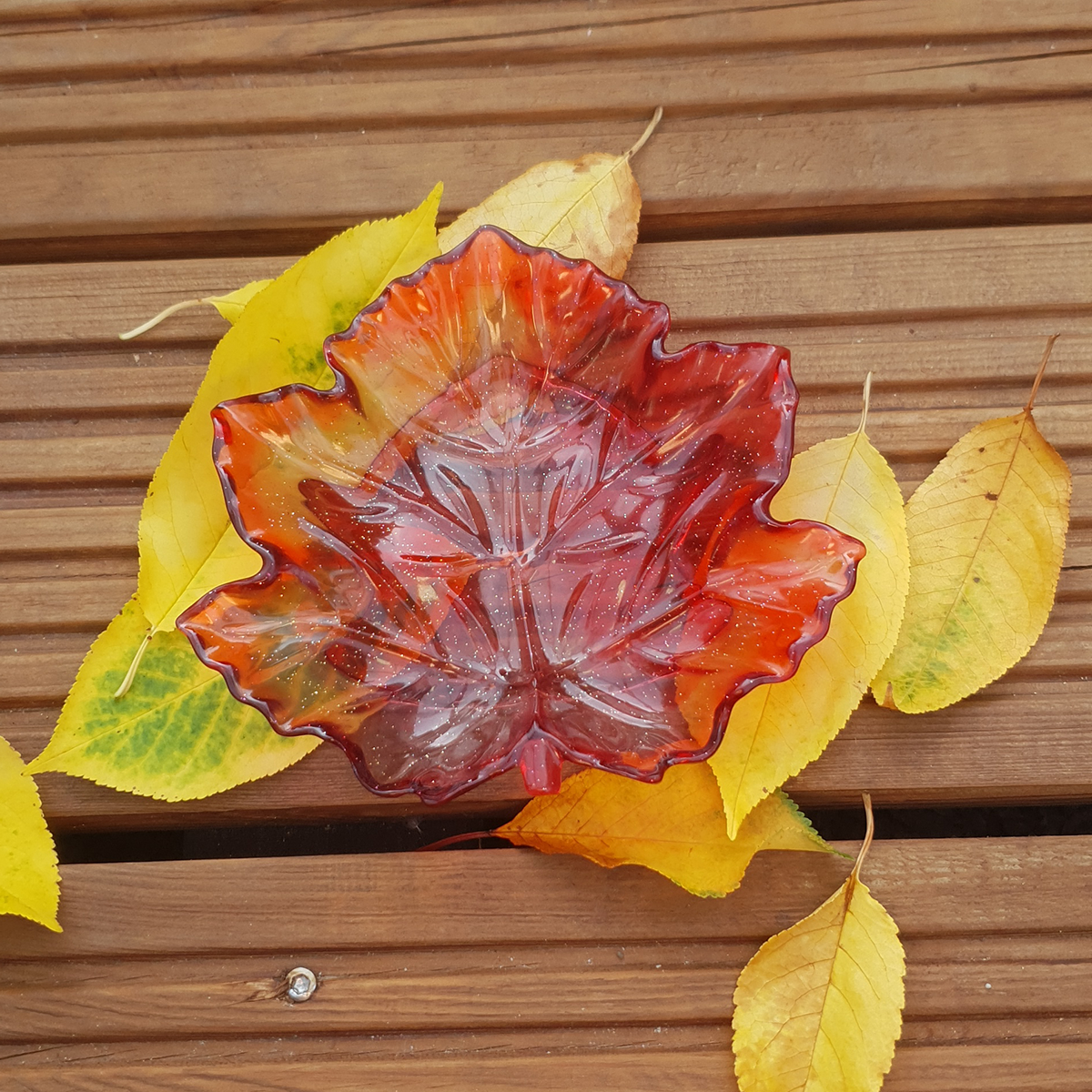 List miska plochá z epoxidovej živice je ručne odlievaný a brúsený doplnok, ideálny na dekoráciu, fotenie či tematické hry. Každý kus je originál – ľahký, odolný a ideálny pre jesenné hry.