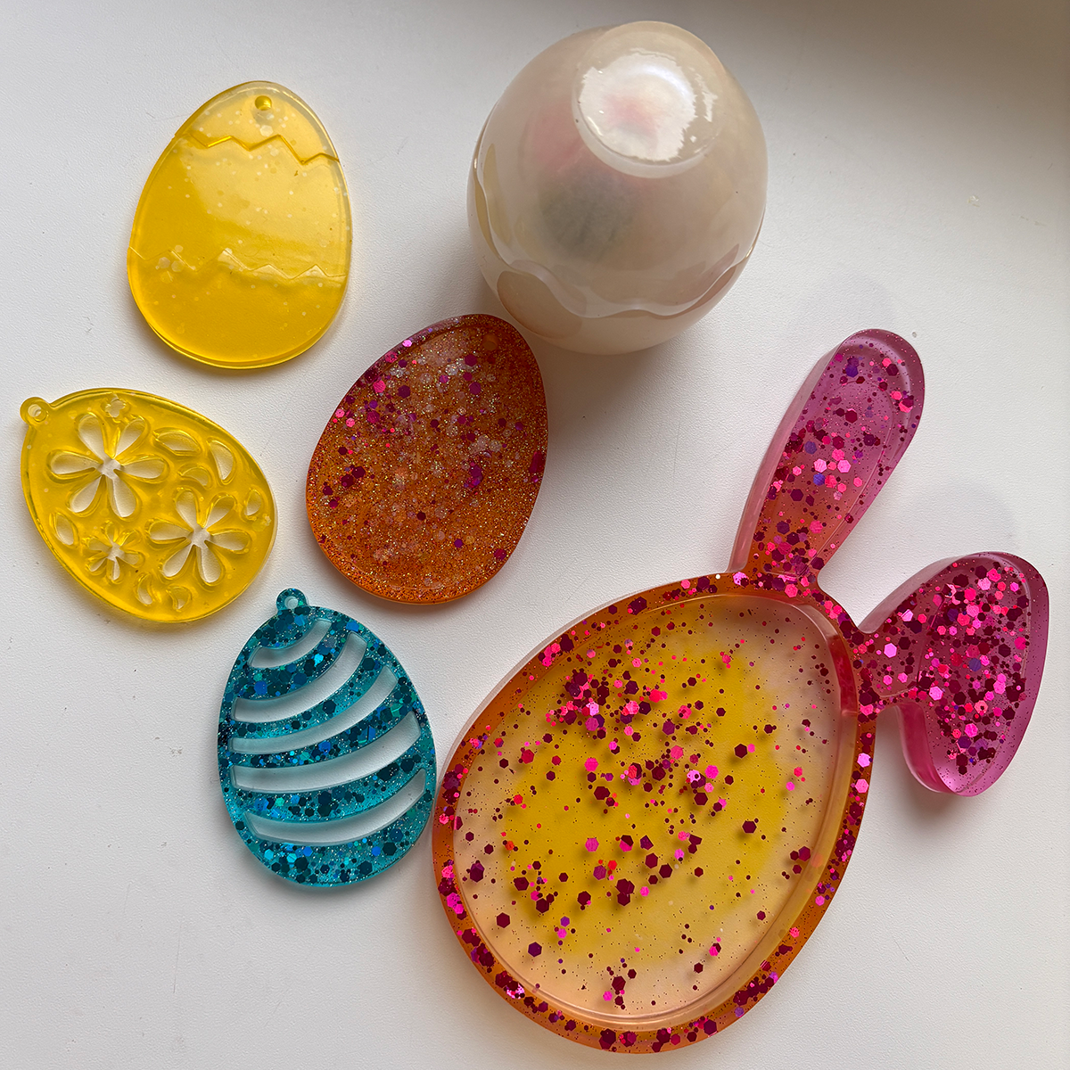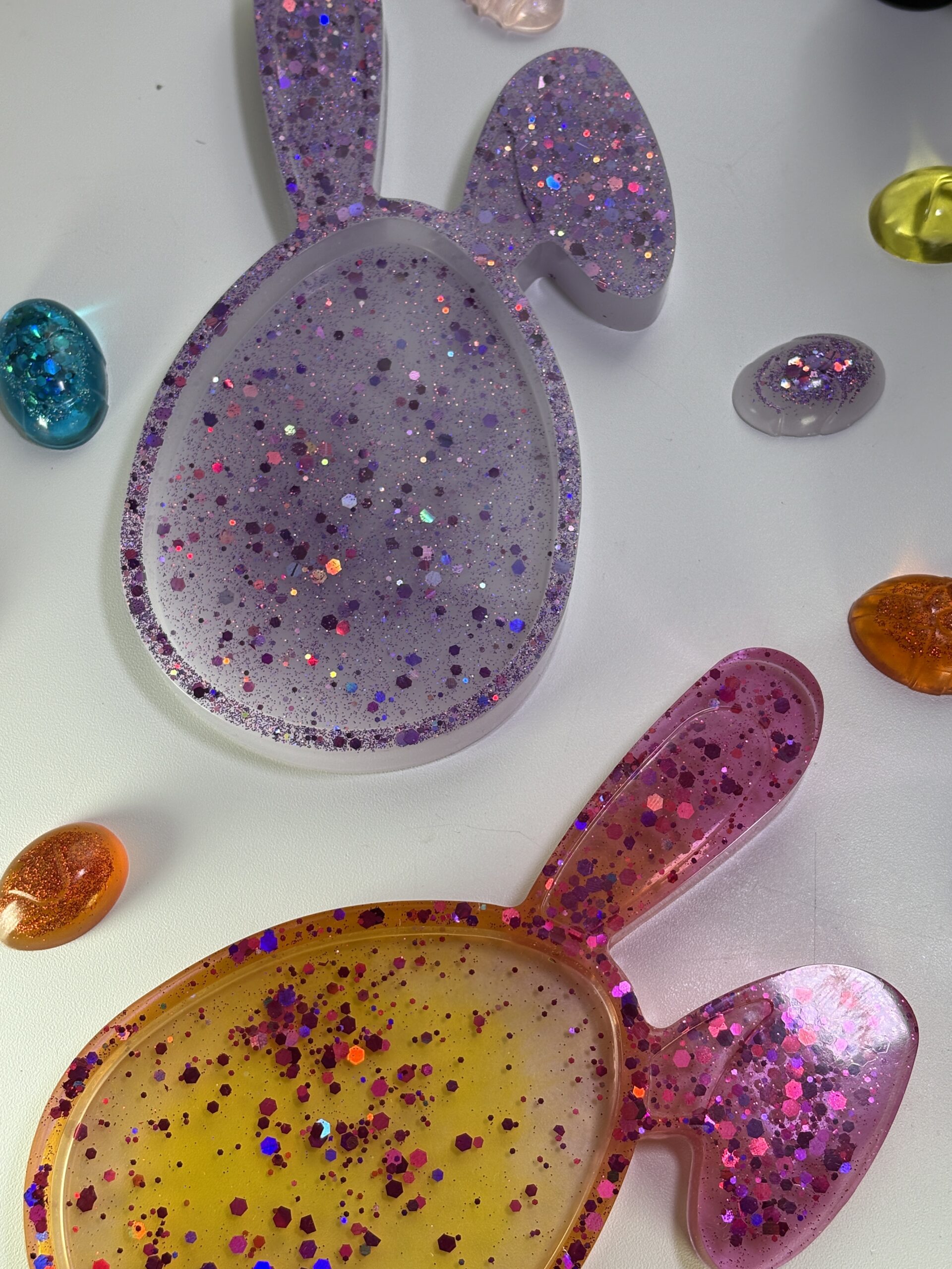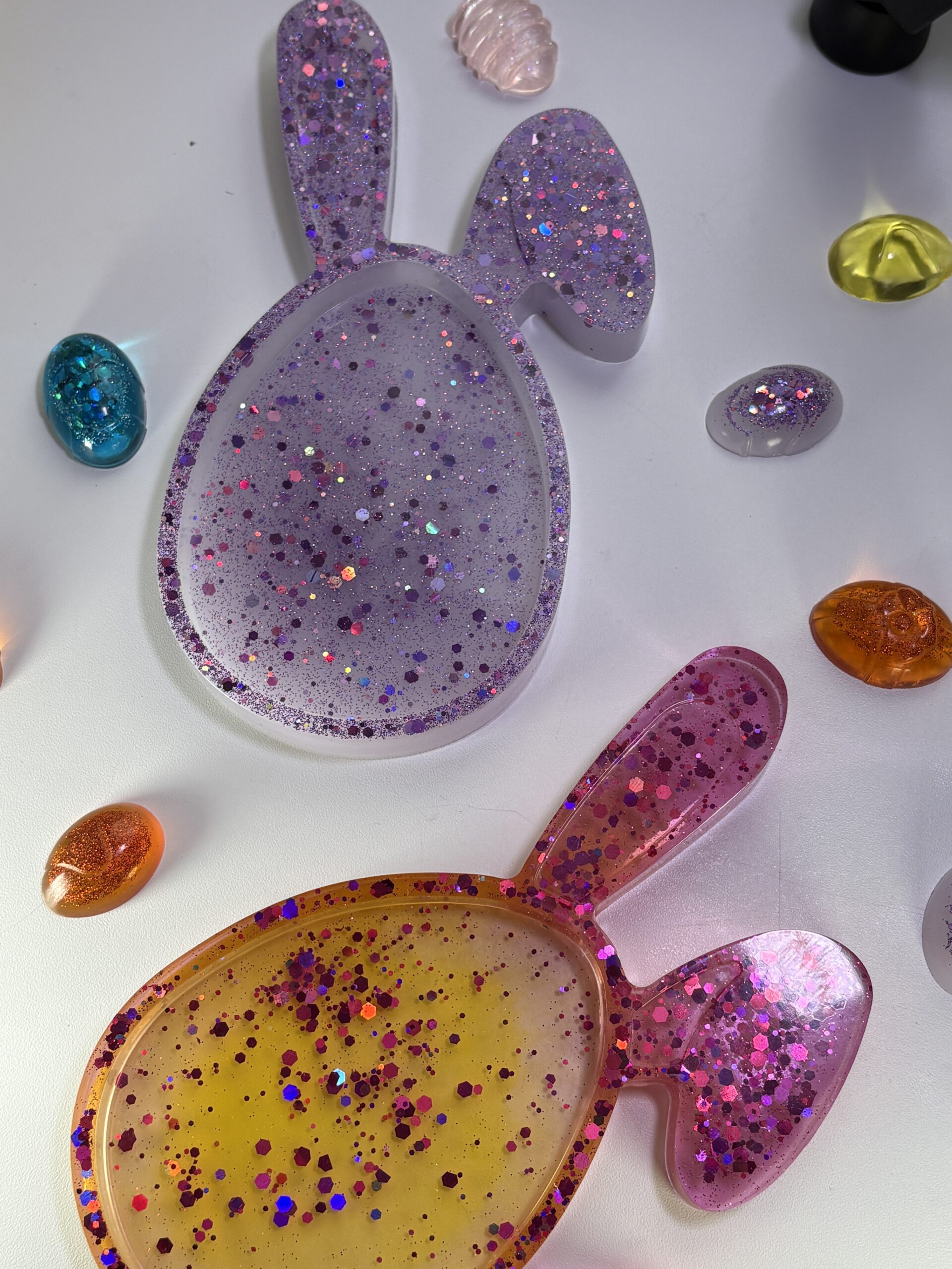 Ručne odlievaná miska v tvare vajíčka s ušami z epoxidovej živice je ideálna pre Senzory Play, triedenie a tvorivé jarné hry plné fantázie.