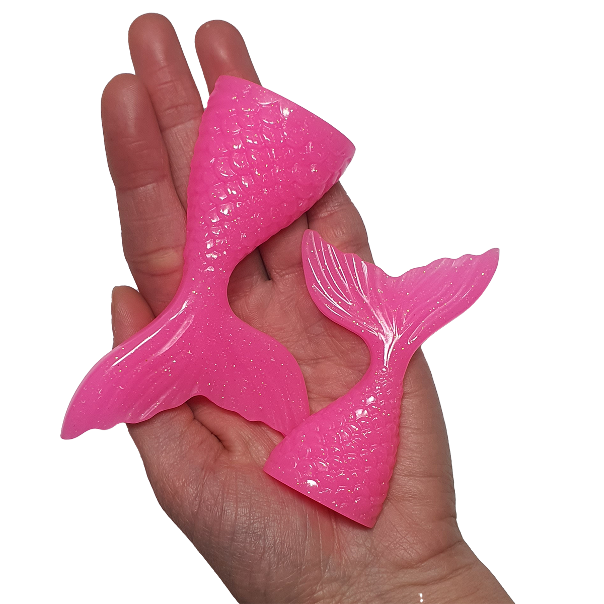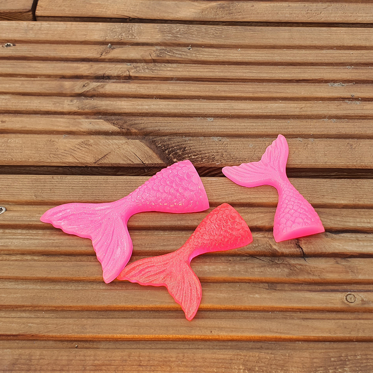 Ružový chvost morskej panny z epoxidovej živice. Lesklý, pevný a originálny handmade doplnok – ideálny na dekoráciu, fotenie či tematické hry.