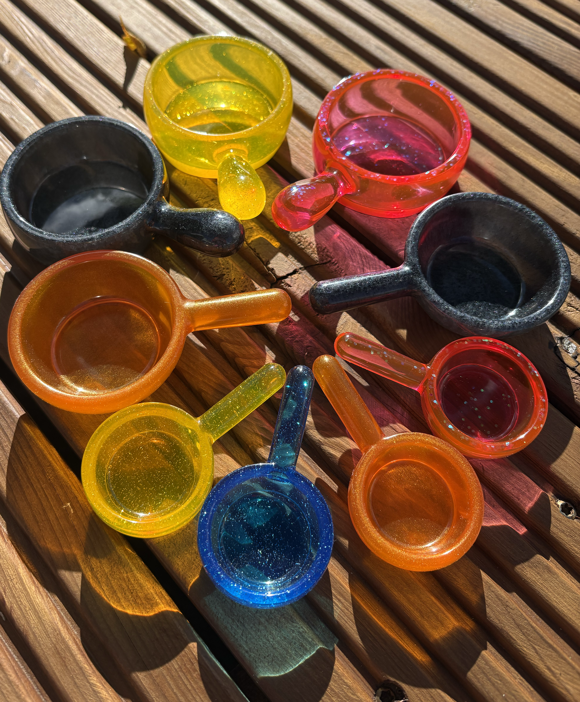 Panvička stredná z epoxidovej živice je ručne odlievaný a brúsený doplnok, ideálny na dekoráciu, fotenie či tematické hry. Každý kus je originál – ľahký a odolný. Ideálny ako základný doplnok pre senzory a potion play.