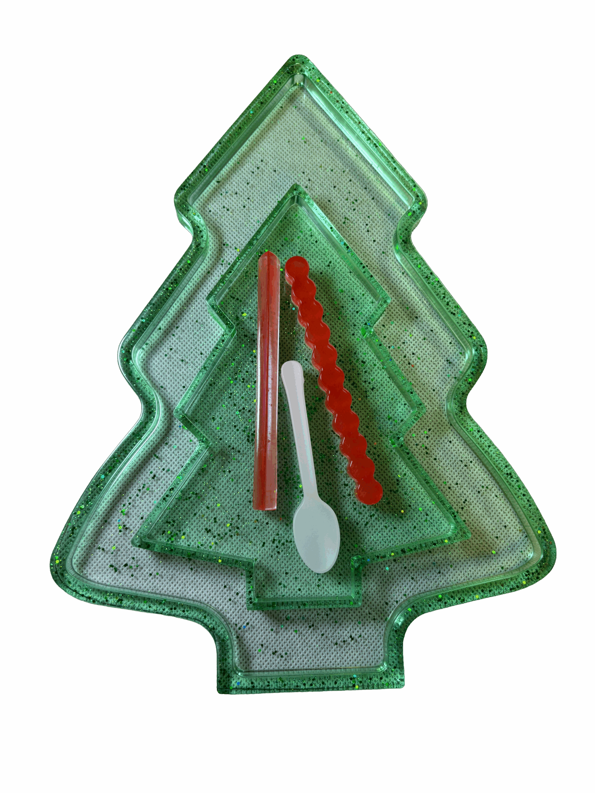 Tácka stromček z epoxidovej živice je ručne odlievaný a brúsený doplnok, ideálny na dekoráciu, fotenie či tematické hry. Každý kus je originál – ľahký a odolný, ideálny pre zimné a vianočné hry.
