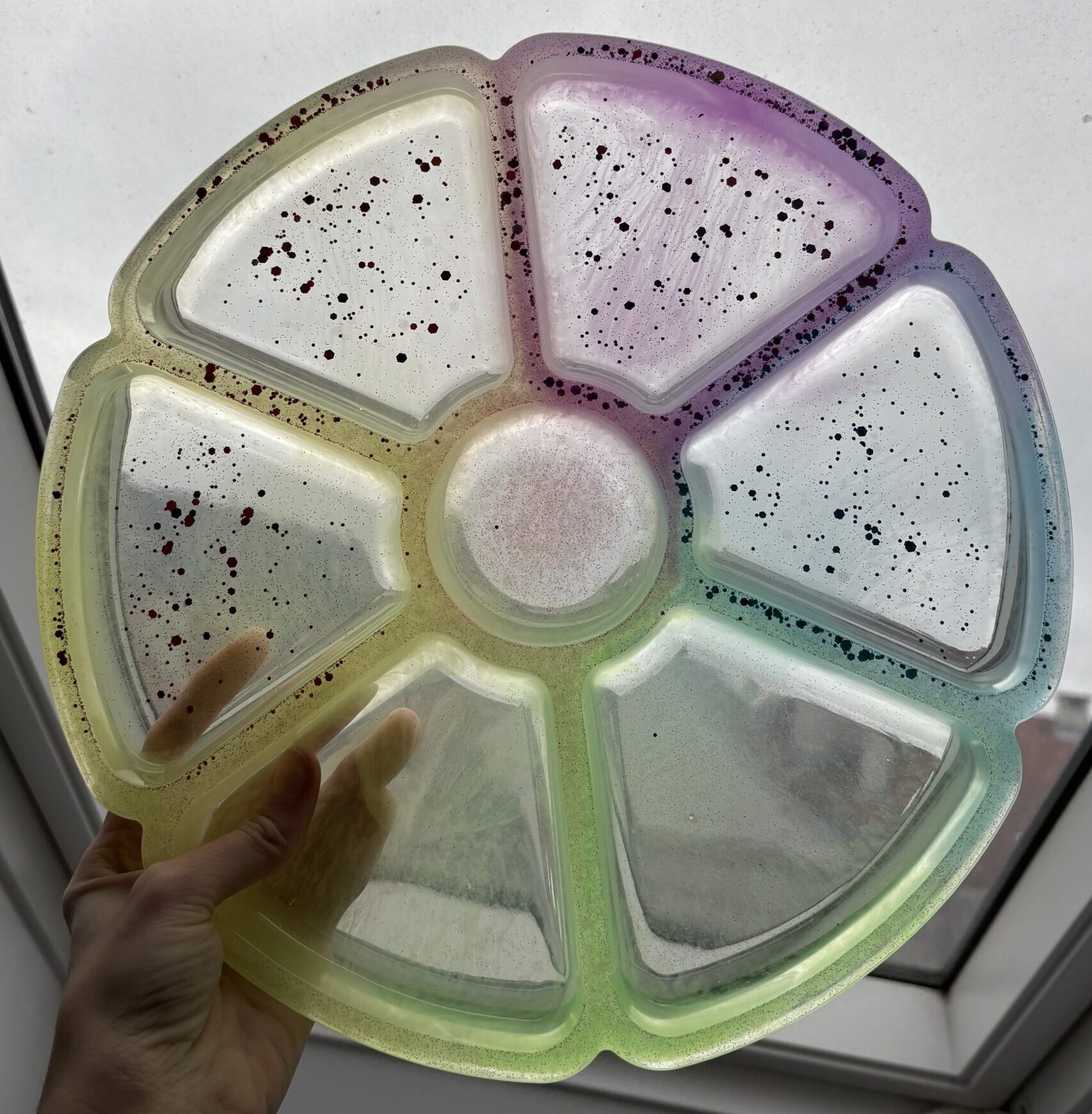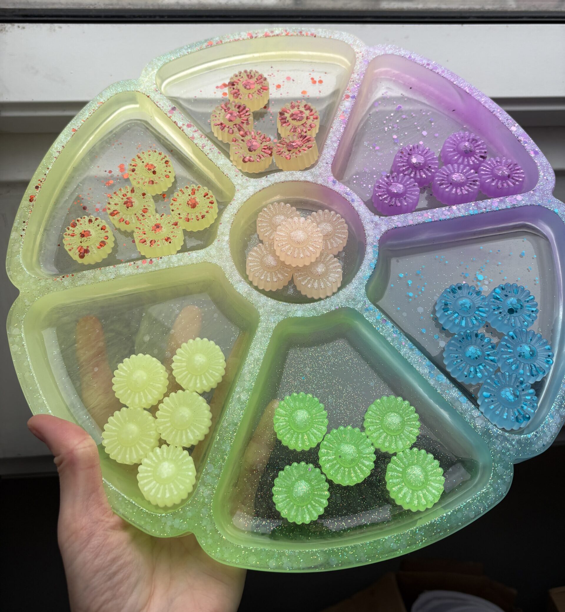 Táto handmade veľká triediaca tácka z epoxidovej živice je súčasťou základnej kolekcie Senzory Play od Cherubin Store – vytvára priestor pre fantáziu, zmyslové hry a tvorivé objavovanie.