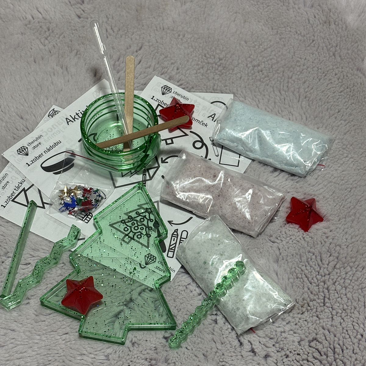 Táto handmade sada stromčekové elixíry z epoxidovej živice je súčasťou zimnej kolekcie Senzory Play od Cherubin Store – vytvára priestor pre fantáziu, zmyslové hry a tvorivé objavovanie.