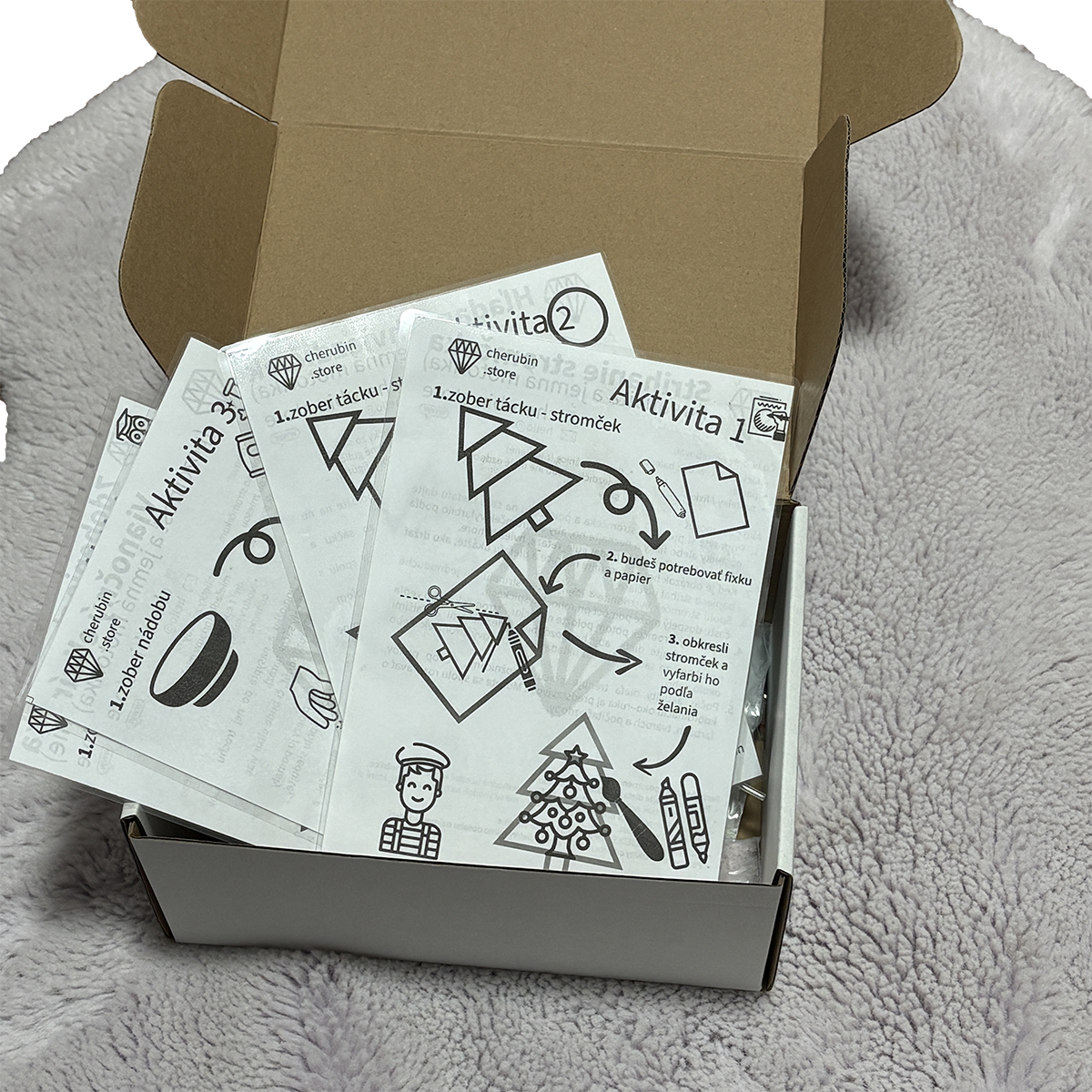 Táto hracia sada je navrhnutá tak, aby ste ju mohli len rozbaliť, pridať vodu a spolu s deťmi sa ponoriť do vianočného čarovania. Deti si vystrihnú papierový stromček, schovávajú hviezdičky do šumiaceho „snehu“ a v zelenej nádobke miešajú trblietavý vianočný elixír. Pri hre rozvíjajú jemnú motoriku, zvedavosť, fantáziu a prvé „vedecké“ pozorovanie. Súčasťou balenia sú aj kartičky s aktivitami a bezpečnostné odporúčania pre rodičov.