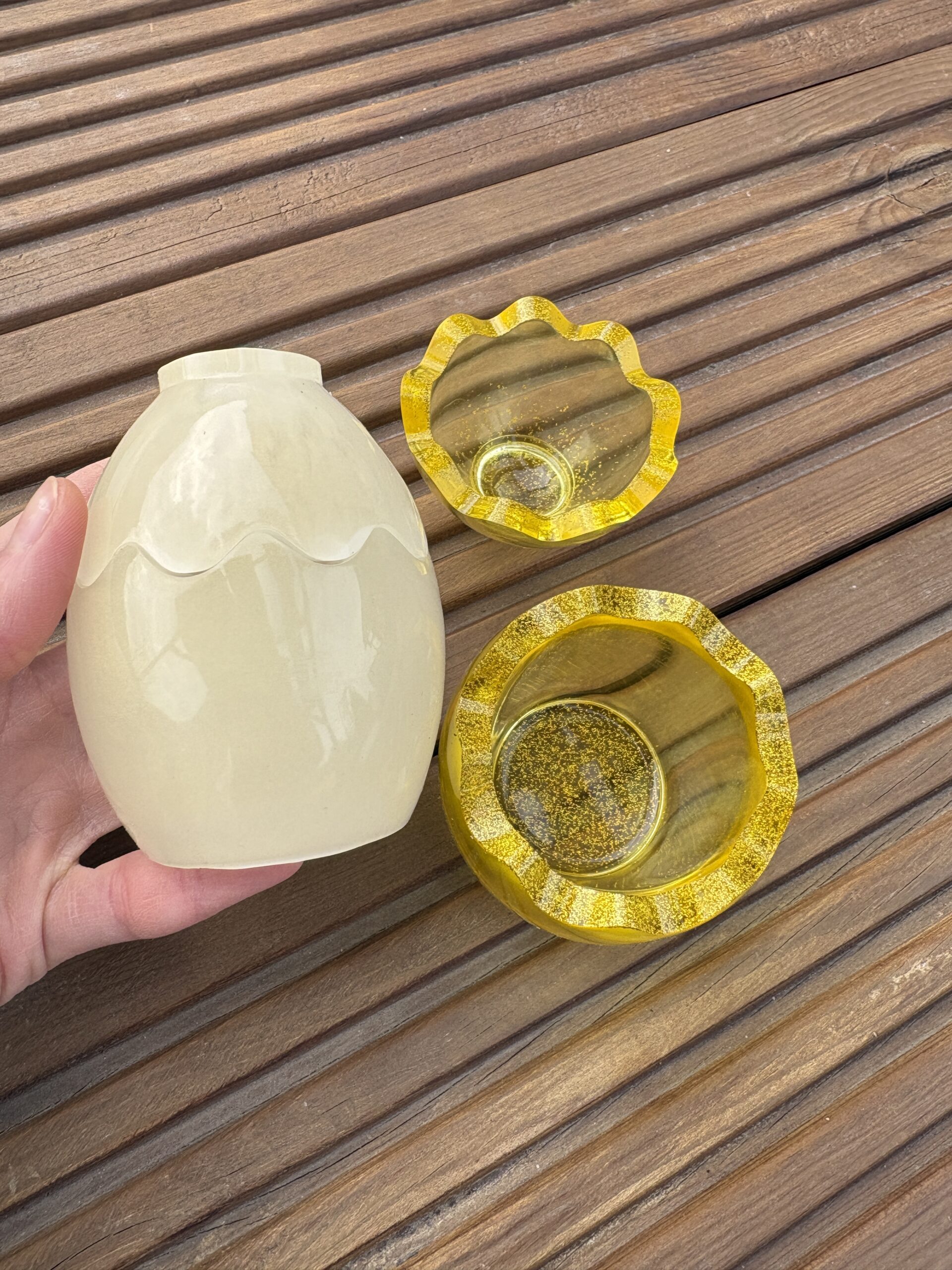 Zatváracia nádobka v tvare vajíčka z epoxidovej živice je ručne odlievaný a brúsený doplnok, ideálny na dekoráciu, fotenie či tematické hry. Každý kus je originál – ľahký a odolný, ideálny pre jarné hry.